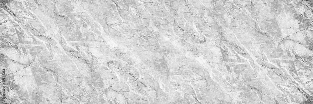 Black white rock texture. Marble effect. Close-up. Light gray stone background with space for design. Wide banner. Panoramic.