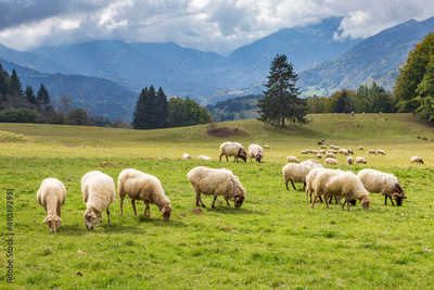 Sheep in mountain. French Alps at Granges de Joigny.