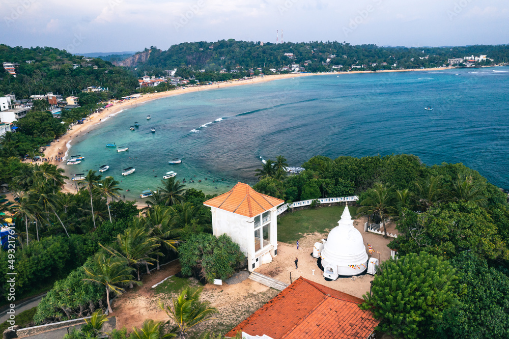 Aerial. Beach view in Unawatuna, Sri Lanka.
