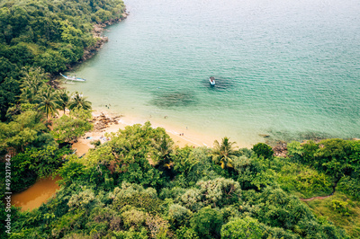 Tropical Jungle Beach in Sri Lanka. Aerial view of Exotic Costline and Rainforest. Paradise Beach.