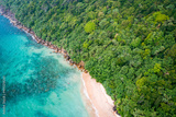 Tropical Jungle Beach in Sri Lanka. Aerial view of Exotic Costline and Rainforest. Paradise Beach.