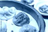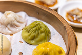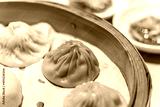 Homemade Chinese steamed dumpling or steamed stuff bun in a Bamboo Steamer