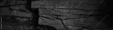 Black and white rock texture. Crushed mountain surface. Close-up. Grunge backdrop. Dark gray stone background with space for design. Wide banner. Panoramic.