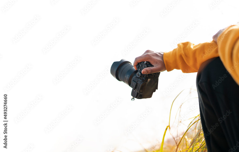 Photographer holding his camera, Photography videography concept image