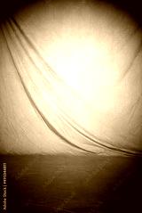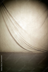 Neutral color cloth drape fabric background or backdrop with center light spot.
