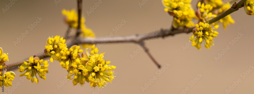 Yellow flowers on the branches.