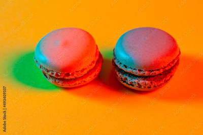 Close-up of macarons cakes of different colors .Culinary and cooking concept. Tasty colorful macaroons.