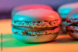 Close-up of macarons cakes of different colors .Culinary and cooking concept. Tasty colorful macaroons.