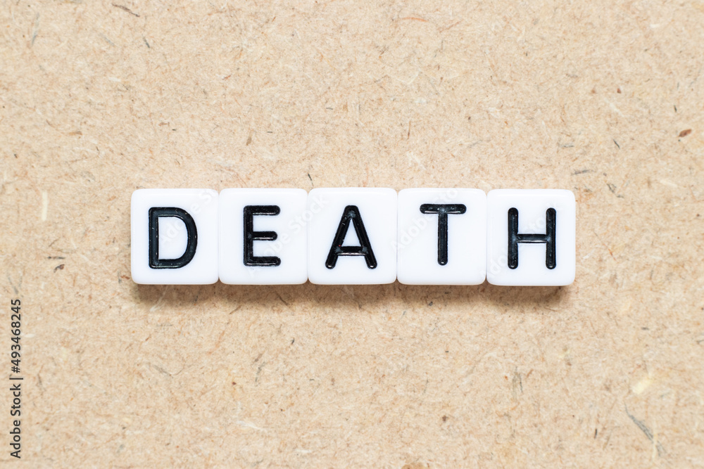 White tile alphabet letter with word death on wood background