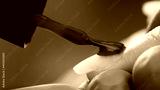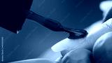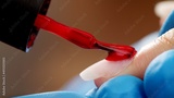Manicurist paints nails with red gel polish. Application of nail polish on nails. Nail polish application. Manicure service. Specialist covers the nail of client by red varnish. Close up.