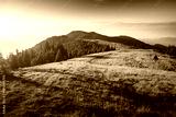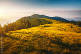 Morning sunlight illuminates the mountain ranges. Carpathian mountains, Ukraine.