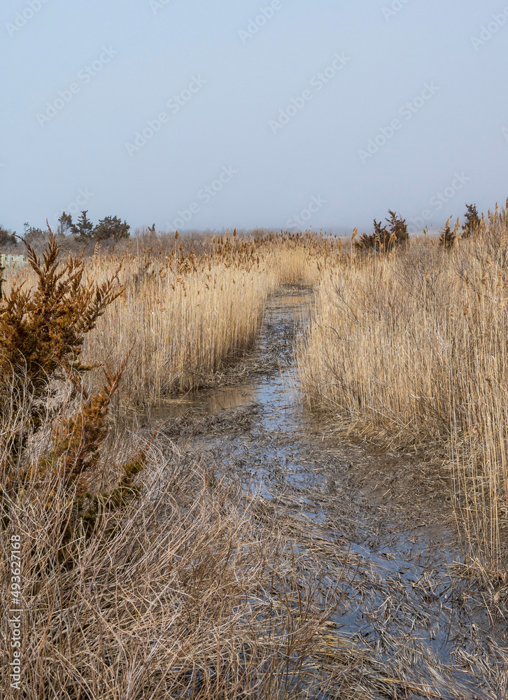 sand dunes and grass with tidal stream