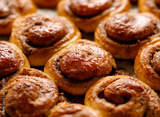Traditional sweet cinnamon buns kanelbullar, close up view