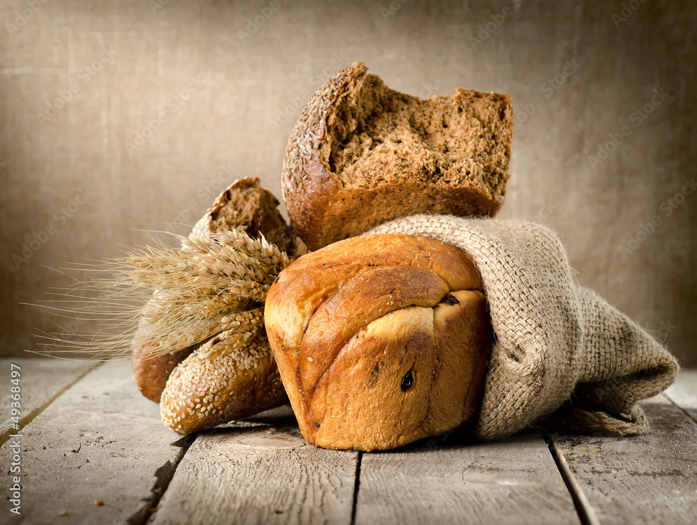 Bread in assortment and wheat