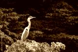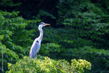Grey heron on the tree. Wild wading bird with long legs and beak