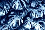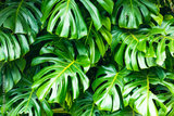 Green leaves of Monstera philodendron plant growing in wild, the tropical forest plant.