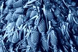 Pineapple background, lots of ripe yellow pineapples at market asia fruit food pineaple. Sri Lanka.