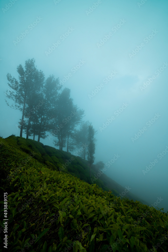 Moody nature scenery, beautiful foggy morning view from Munnar Kerala