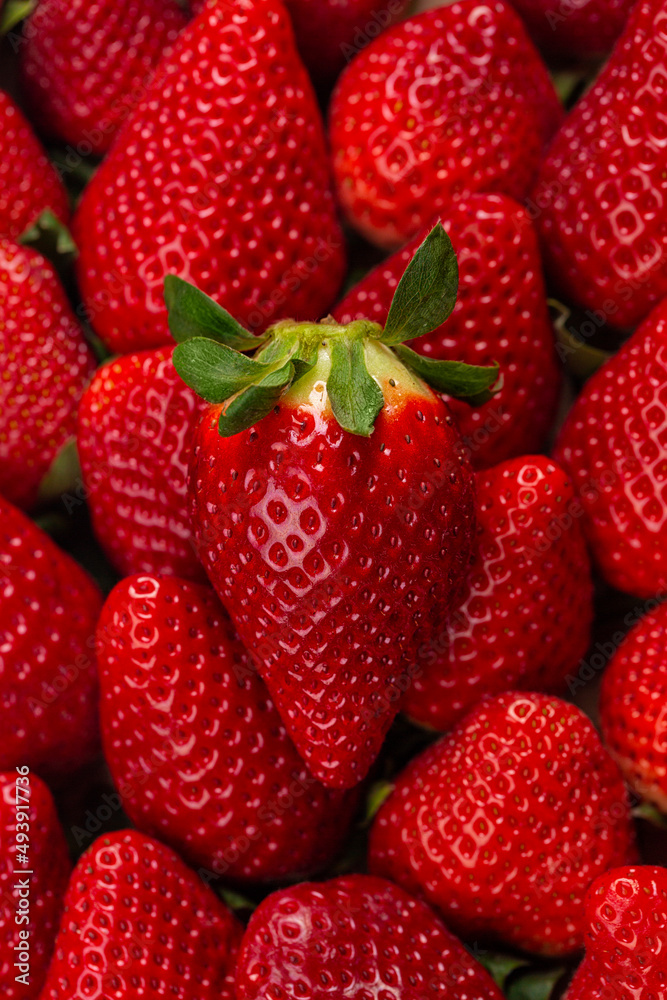 Closeup of berry. Strawberries background. Food background. Vertical image.