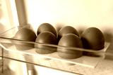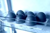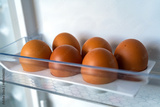Brown chicken eggs in the refrigerator. 6 chicken eggs in the refrigerator door