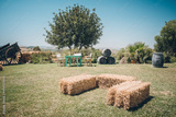 hay bales in a field