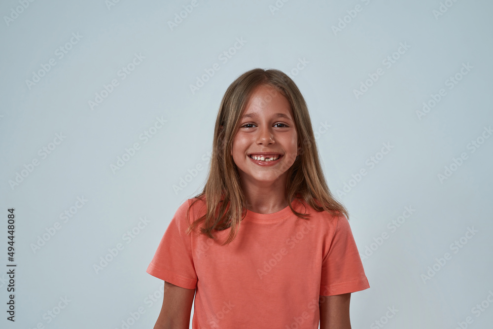 Front view of caucasian girl looking at camera