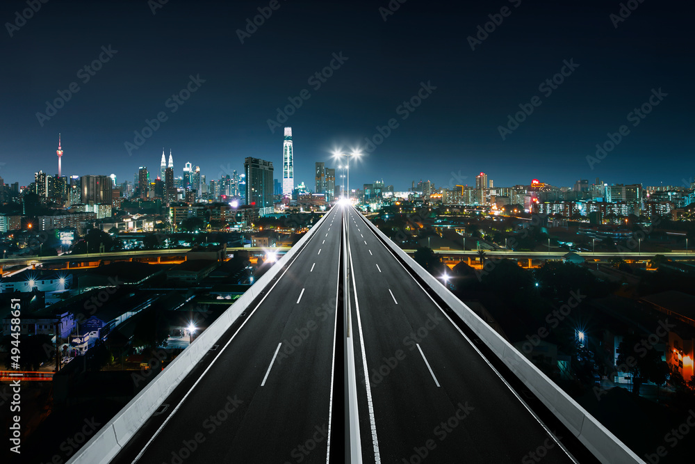 Top view of Highway overpass with beautiful city background. night scene .