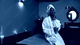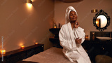 Pleased african girl touching herself in spa salon