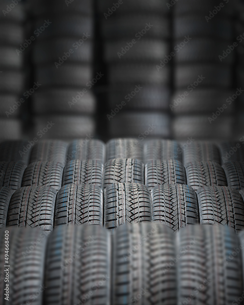 tire at repairing service garage background. Technician man replacing winter and summer tyre for safety road trip. Transportation and automotive maintenance concept