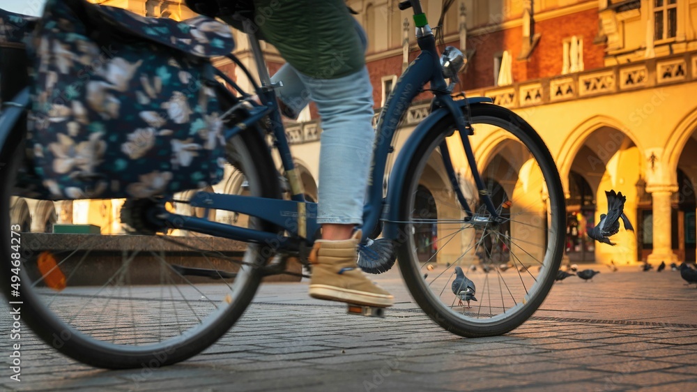 Gołębie na krakowskim rynku głównym w promieniach słońca