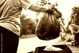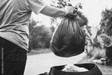 hand holding garbage black bag putting in to trash