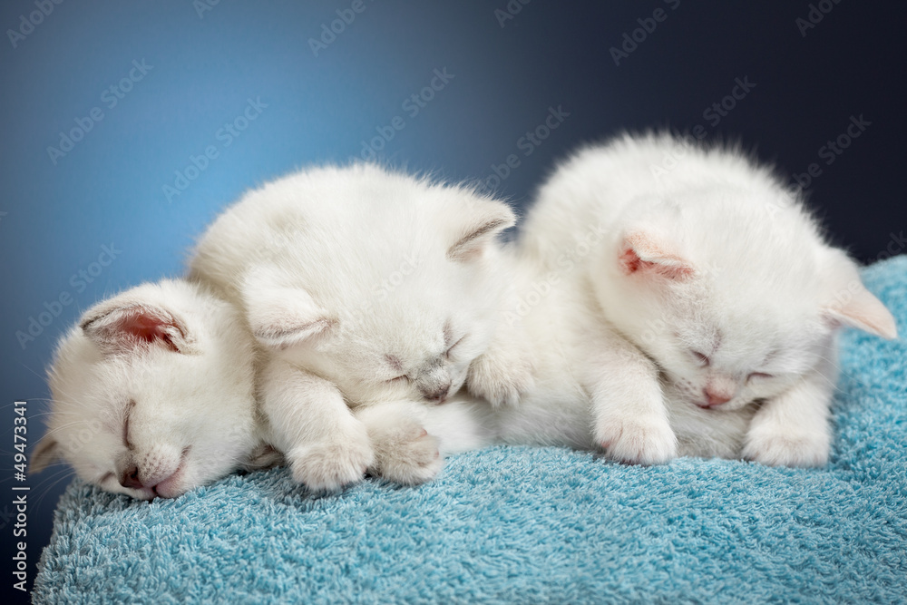 Three sleeping british baby kittens