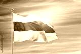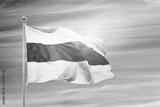 White blue white flag on flagpole against blue sky with clipping path