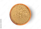 Houjicha Hojicha tea powder isolated on white background. Top view.