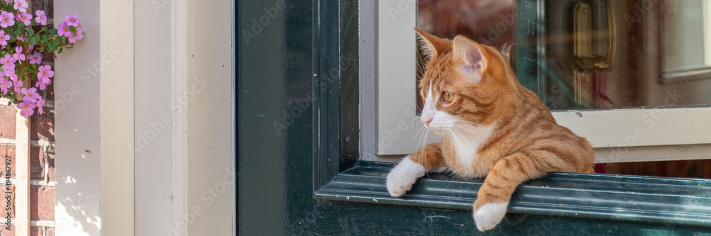 Ginger cat in the green door flame.