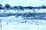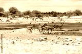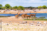 a herd of antelopes at a waterhole in Etosha National Park, Namibia