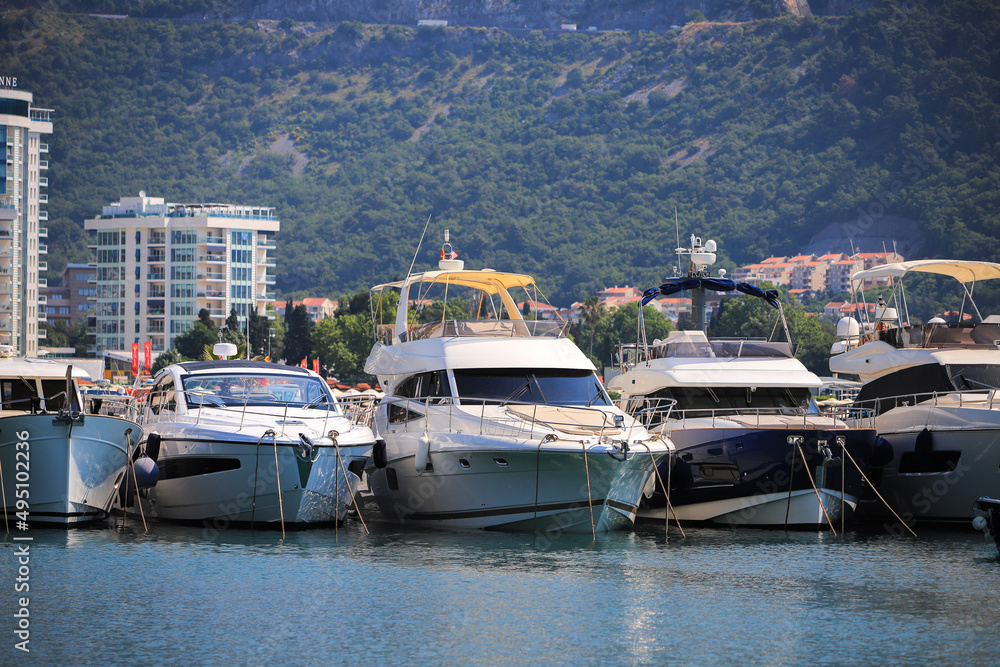Luxury motor yacht moored in the marina