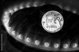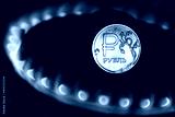 Gas burner and ruble coin, Russian money on home gas stove