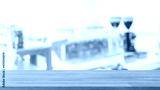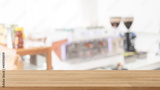Empty white marble stone table top and blur glass window interior restaurant banner mock up abstract background - can used for display or montage your products.