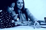 Multiethnic kids at STEM lesson constructing robot in classroom with woman teacher Children making electronic arm model at modern science school African American, Caucasian pupils learning technology