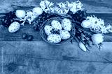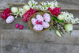 Osternest mit Tulpen und Hyazinthen.