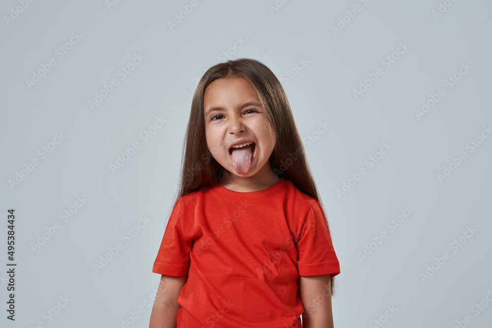 Cropped of joking little girl sticking out tongue