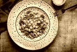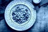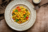 Potato Gnocchi with Pesto Sauce, Zucchini and Tomato. Top view, closs up. Vegetarian food.