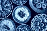 Many kinds of food on the table. Local foods named izmir köfte , hünkar beğendi and etli nohut pilav
