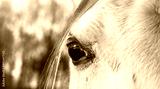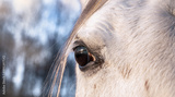 Portrait of a white arabian horse. Polish Arabians. Head and eye close up