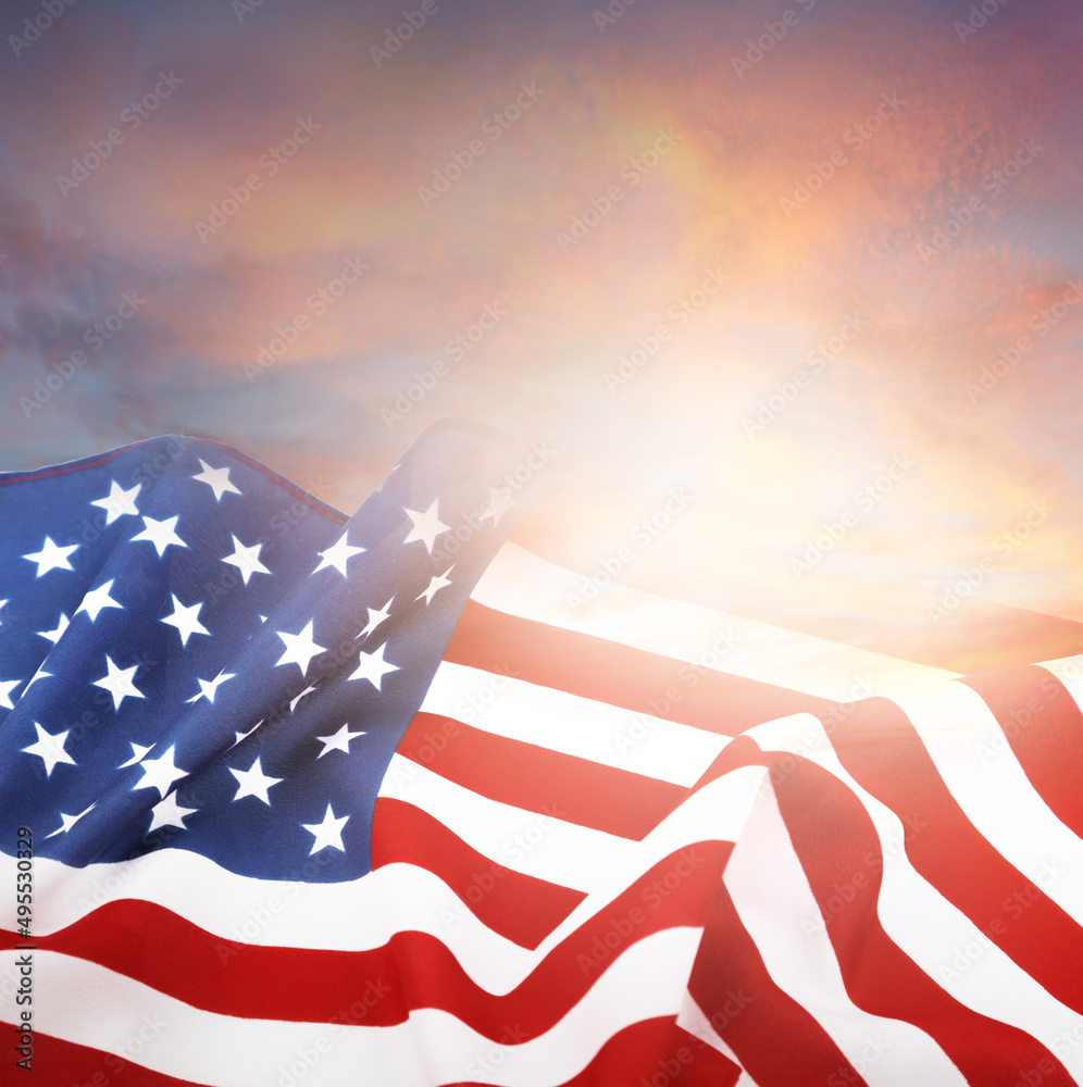 American flag in sunny sky