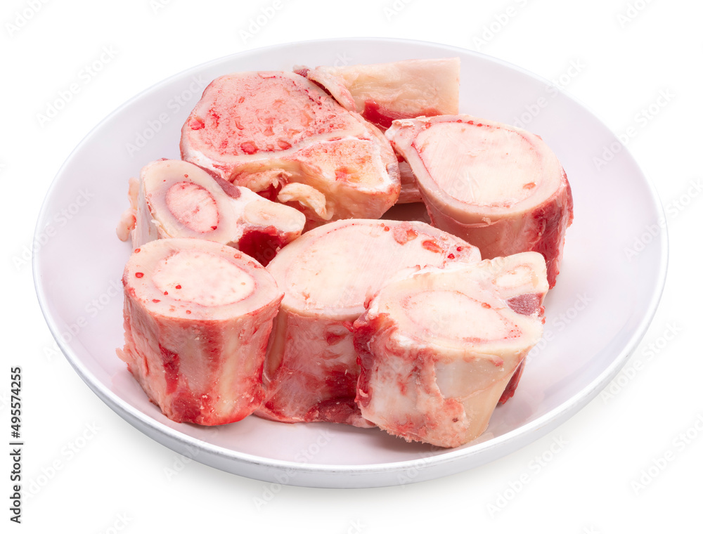Beef bone marrow in white plate isolated on white background, Beef Stock Bone, Marrowbone on white With clipping path.