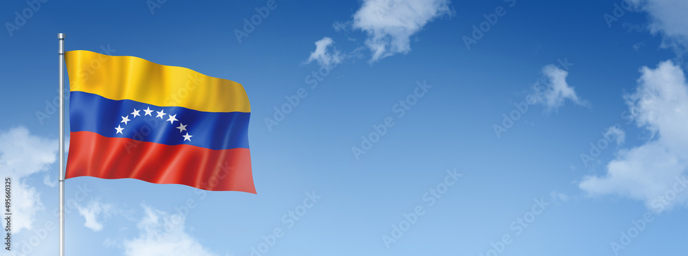 Venezuelan flag isolated on a blue sky. Horizontal banner