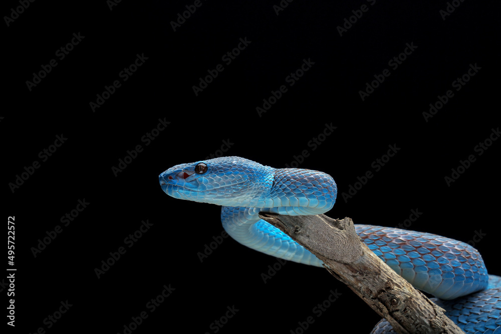 Blue viper snake closeup on branch,blue insularis,Trimeresurus Insularis