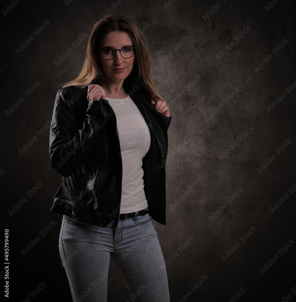 Close-up shot of a blonde beautiful woman in a studio - studio photography